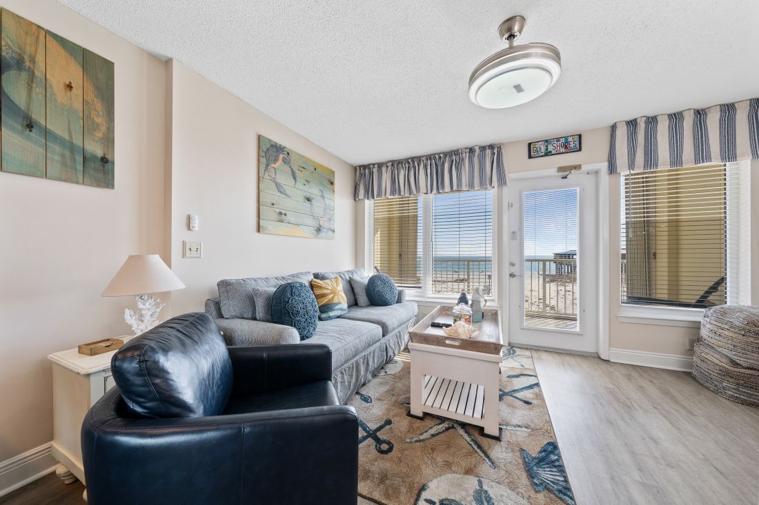 Boardwalk 184 is a cozy 1-bedroom, 1-bathroom Gulf-front condo that comfortably sleeps up to 4 guests, making it a great choice for small families or couples looking for a convenient beach escape. This unit offers easy, direct access to the sugar-white sand and is located within the popular Boardwalk Condominium, home to the iconic Sea-N-Suds restaurant right on site. Enjoy unbeatable proximity to the beach, dining, and all the best of Gulf Shores while having a comfortable place to relax, recharge, and take in the views.