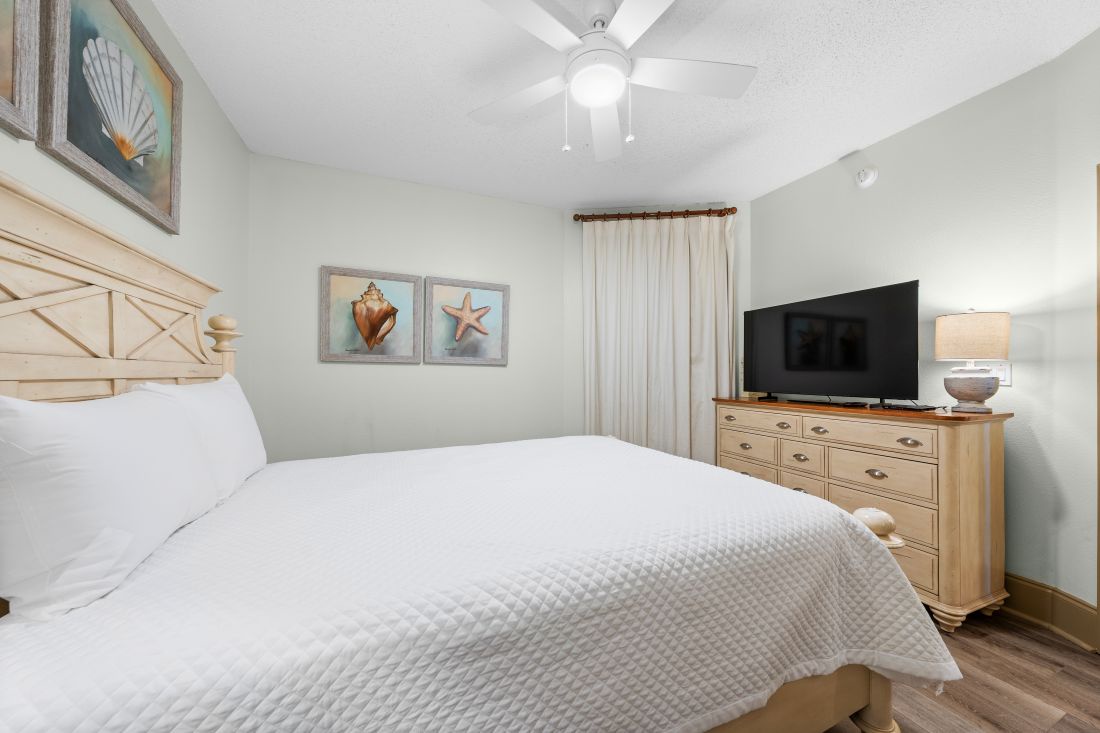 When it is time to end the day the comfort of the king bed in the primary bedroom awaits you. Open the curtains and enjoy the sounds of the Alabama coast at night. The bathroom has a jetted tub and a large walk-in shower. The second bedroom has a queen size bed and there is also another full bathroom with a tub/shower combination.