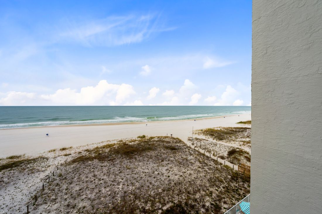 by Carrie F.This vacation was planned in the very last minute, we were supposed to go to Florida. But Hurricane Ian change that very quick. I needed somewhere to go with the family very quick. Multiple people suggested golf Shores. And boy was I happy they suggested golf Shores. Our condo was absolutely amazing. Right in the heart of golf Shores, restaurants, stores, everything was within walking distance. The beach was absolutely mesmerizing. We sat out on our balcony every morning with our coffee, watching the sunrise and the dolphins swimming. And at night sat on the balcony with our cocktail watching the sunset. The kitchen is very very well stocked with everything you’ll need. Bedroom is very spacious. The only negative thing I can possibly say is, a new paint job would be nice. But I have no complaints at all. We will definitely be coming back! - Reviewed on VRBO