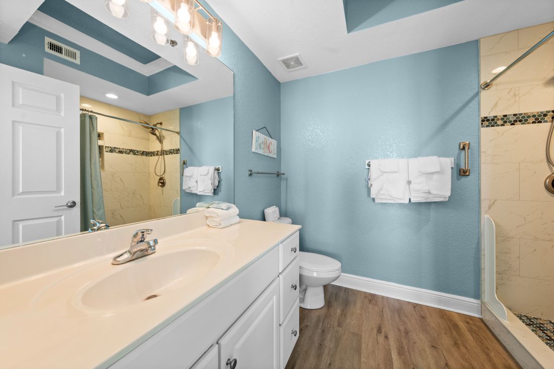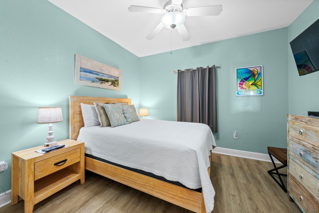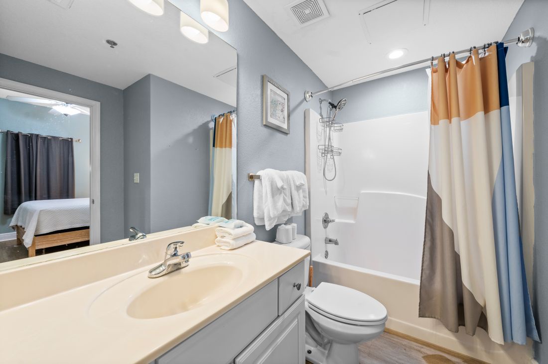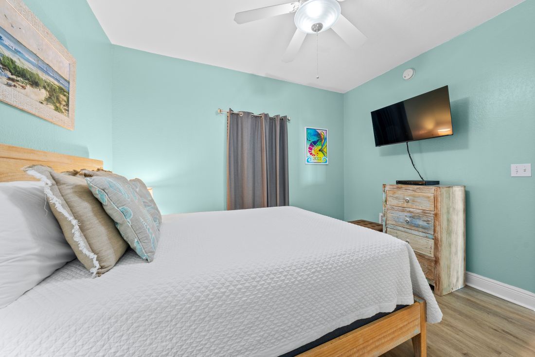 After a busy day of getting your toes in the sand retreat to the primary bedroom which features a newly purchased king size bed and sliding glass doors to access the private gulf-facing balcony. The bathroom has a large vanity with a bathtub and shower combination. The second bedroom has a queen size bed. There are also flat screen televisions in both bedrooms. There is a second full bathroom which has a bath-tub and shower combination which can also be accessed form the common areas of the condo. Need more sleeping space? There is a queen size sofa sleeper in the living room.