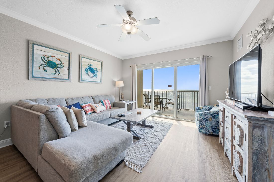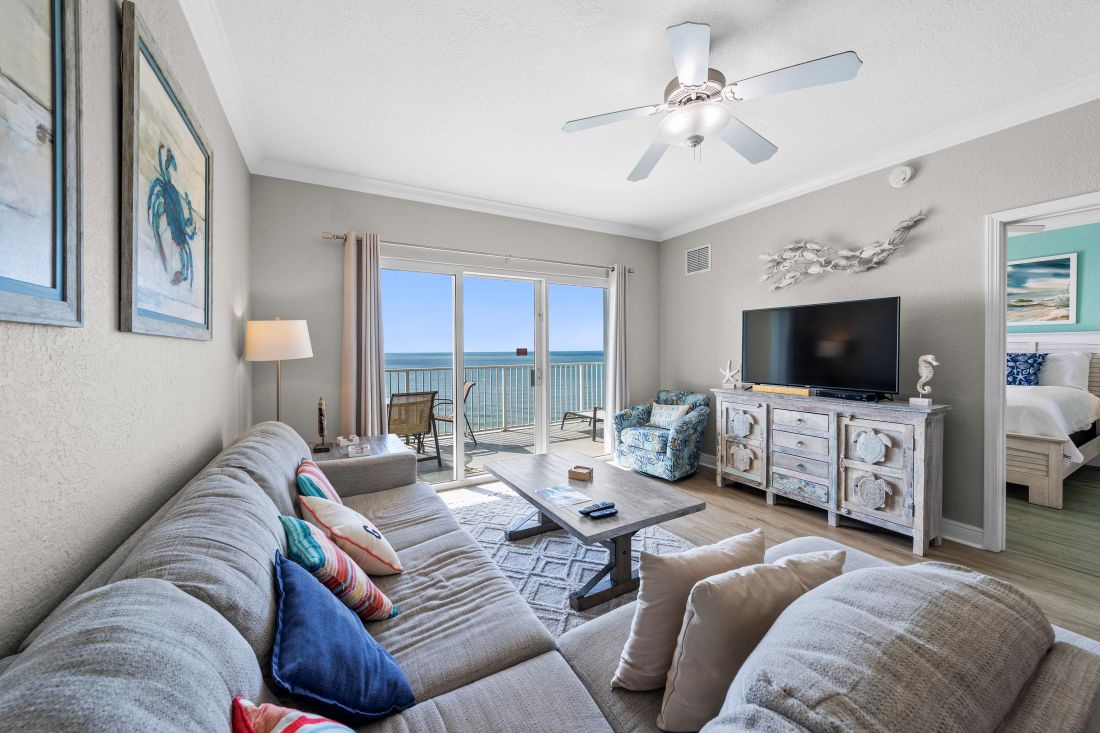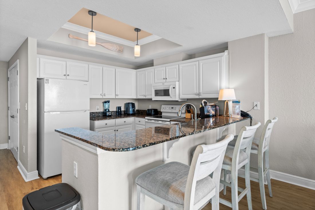 Leave your worries at the door! Crystal Shores West 1002 is your breath of that fresh beach breeze you are looking for. Located in the heart of Gulf Shores this 2-bedroom 2-bathroom vacation rental is perfect for when you just need a beach escape. With gorgeous views of the Gulf of Mexico your family will make memories to last a lifetime. When you step in the door you will see the sparkling gulf waving back at you. The inviting living room designed with coastal comfort in mind allows for great family entertainment. Enjoy togetherness while preparing your fresh caught gulf seafood in the fully equipped kitchen. When it is time to eat gather around the dining table which seats up to 6 people and an additional 3 people at the breakfast bar.