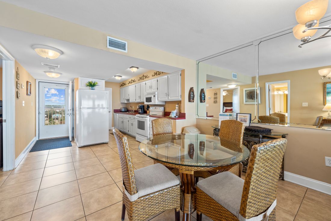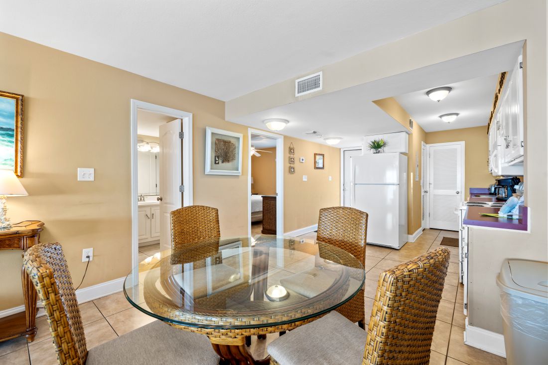 Edgewater 71 is located directly beach front and offers magnificent views of the Gulf of Mexico. Centrally located in Gulf Shores the condo is only minutes away from the islands best dining shopping and local attractions. The east corner location is perfect for catching the beautiful sunrise with your morning coffee! This 7th floor 2-bedroom and 2-bathroom condo will be perfect for making beachside memories. The living room décor will get you in the beach state of mind and allows a perfect view of the gulf from the floor to ceiling windows. The balcony is enclosed and has floor to ceiling sliding glass doors so you can feel the salt air if you choose. There is a fully equipped kitchen with seating for 4 at the dining table.