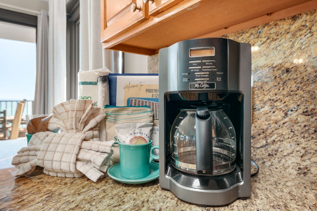 Enjoy the breathtaking views from the private 12th floor corner balcony while sipping your morning coffee. Kick back and relax in the cozy living room. While you watch your favorite family movies on the flat screen television you can slide the floor to ceiling sliding doors open to feel the coastal breeze. When it is time to prepare a meal you will have everything you need in the fully equipped kitchen. There are granite counter tops and updated appliances to help make your seafood dish delicious. You will have everything you need when you stay at Phoenix East 1201. There are flat-screen televisions in every bedroom with cable access, free WiFi and a washer and dryer.