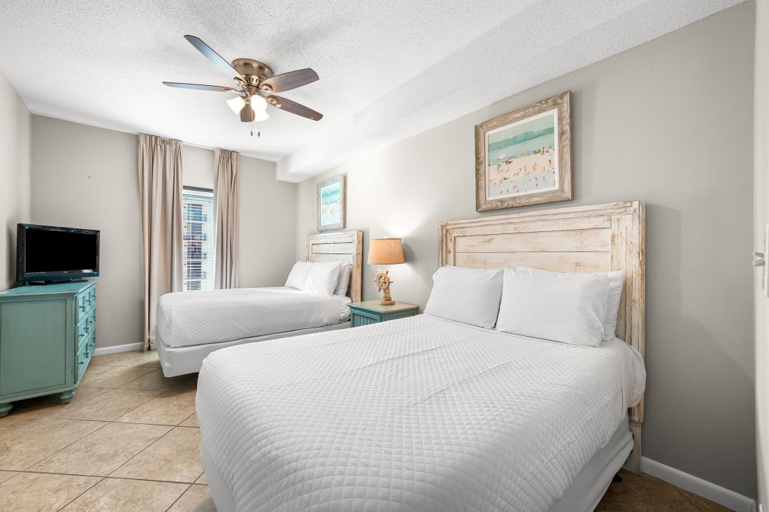 After the sunset when it is time to sleep the primary bedroom will be sure to leave you feeling refreshed for the next fun-filled day. There is a king-size bed along with access to a private side balcony overlooking Orange Beach. The bathroom has a spacious counter area as well as a tub/shower combination. The second bedroom has two full-size beds and the third bedroom has two twin beds. There is a full-size guest bathroom with a tiled walk-in shower.