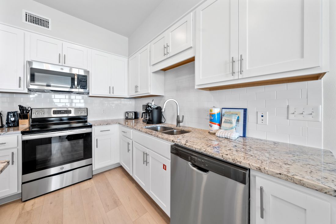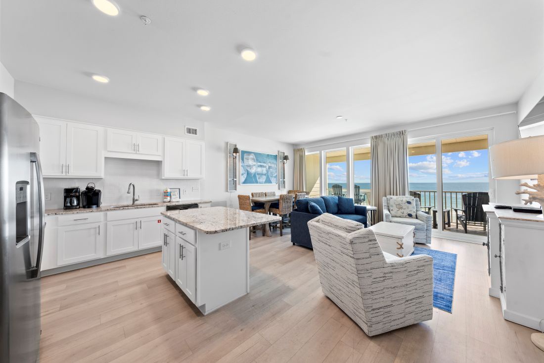 The kitchen is up to date with all stainless-steel appliances and granite counter tops. You will have everything you need to prepare a fresh gulf seafood meal. There is a Keurig you can use to prepare your morning cup of coffee that you can sip while watching the tide roll in from the balcony. The dining table provides seating for 4 people and an additional 3 people at the large island in the kitchen. --------