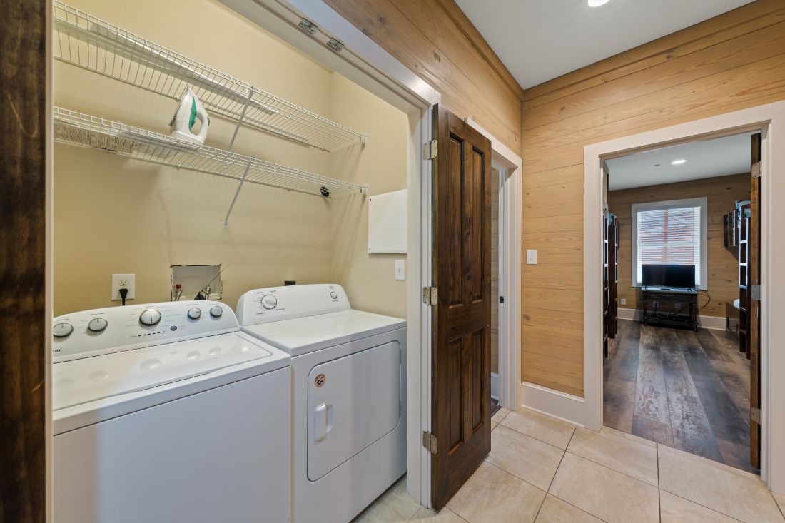 The full size washer and dryer are located in the hall on the second level. Summer Salt 4 West has free WIFI throughout. The bedding is: 2 King beds 1 Queen 8 built in twin beds - bunk style (standard 75" length) and a queen sleeper sofa. The living room and all 4 bedrooms have Flat Screen TVs with Blu-Ray.